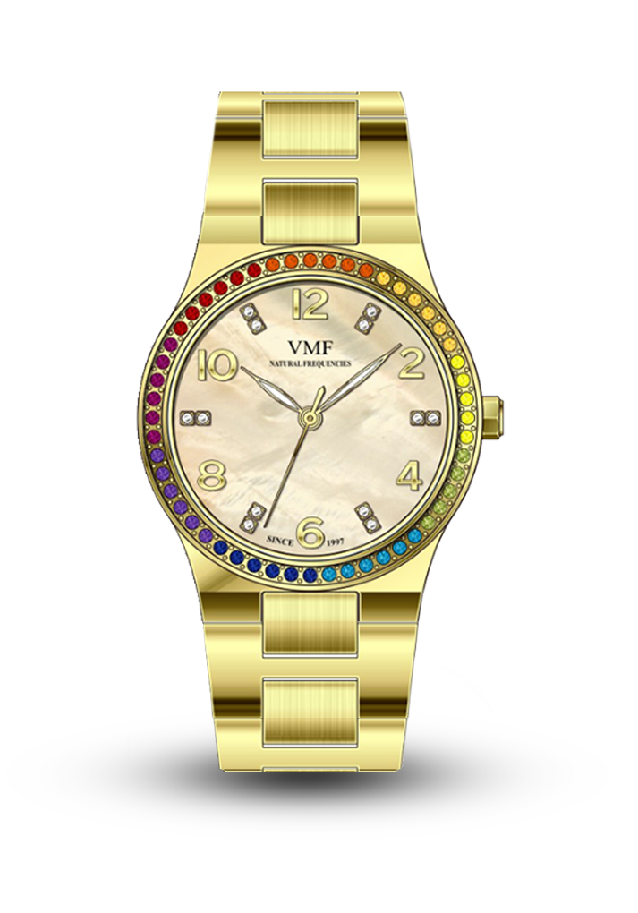 Saatın korpusu və 2 tərəfli qatlanan düyməli qolbağı 316L markalı paslanmaz poladdan hazırlanıb. Siferblat materialı sədəfdəndir və indekslər Çexiya kristalları ilə bəzədilib. Saatın bezelindəki daşlar göy qurşağı çalarında hamar keçidlərlə bir-birini əvəzləyir. Saatın şüşəsi cızılmağa davamlı sapfirdən hazırlanıb.